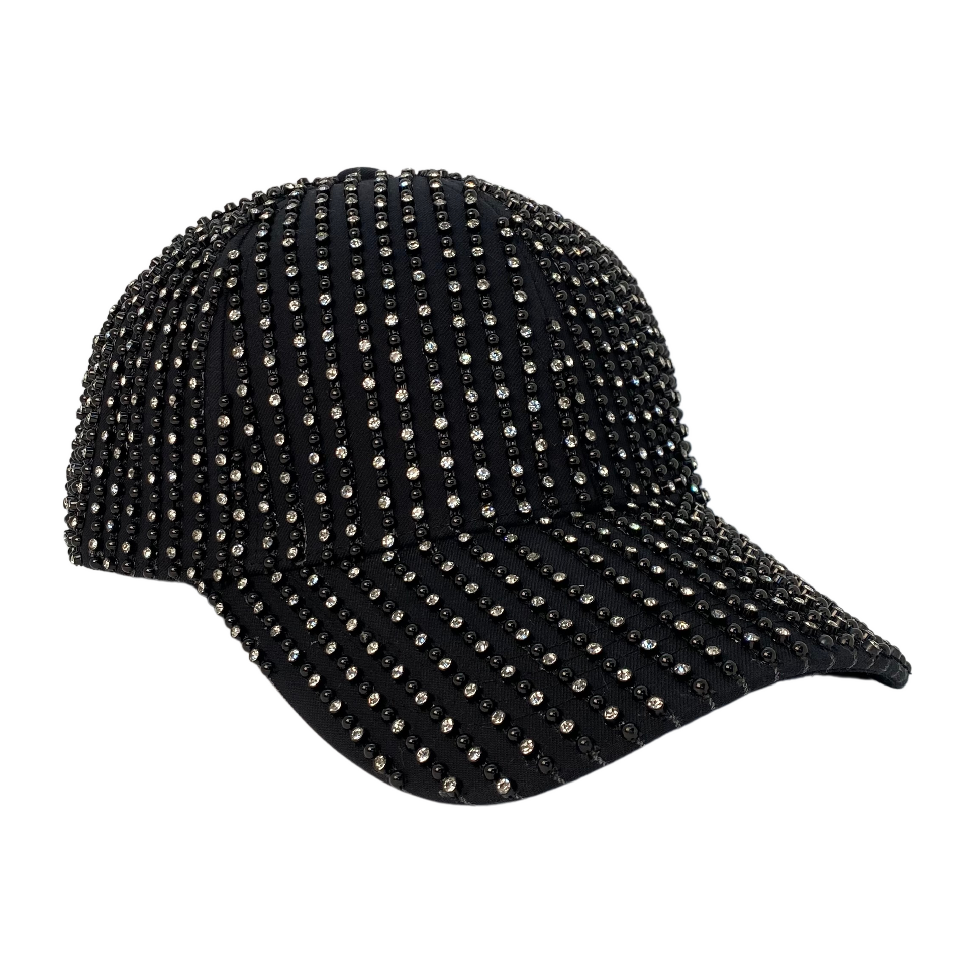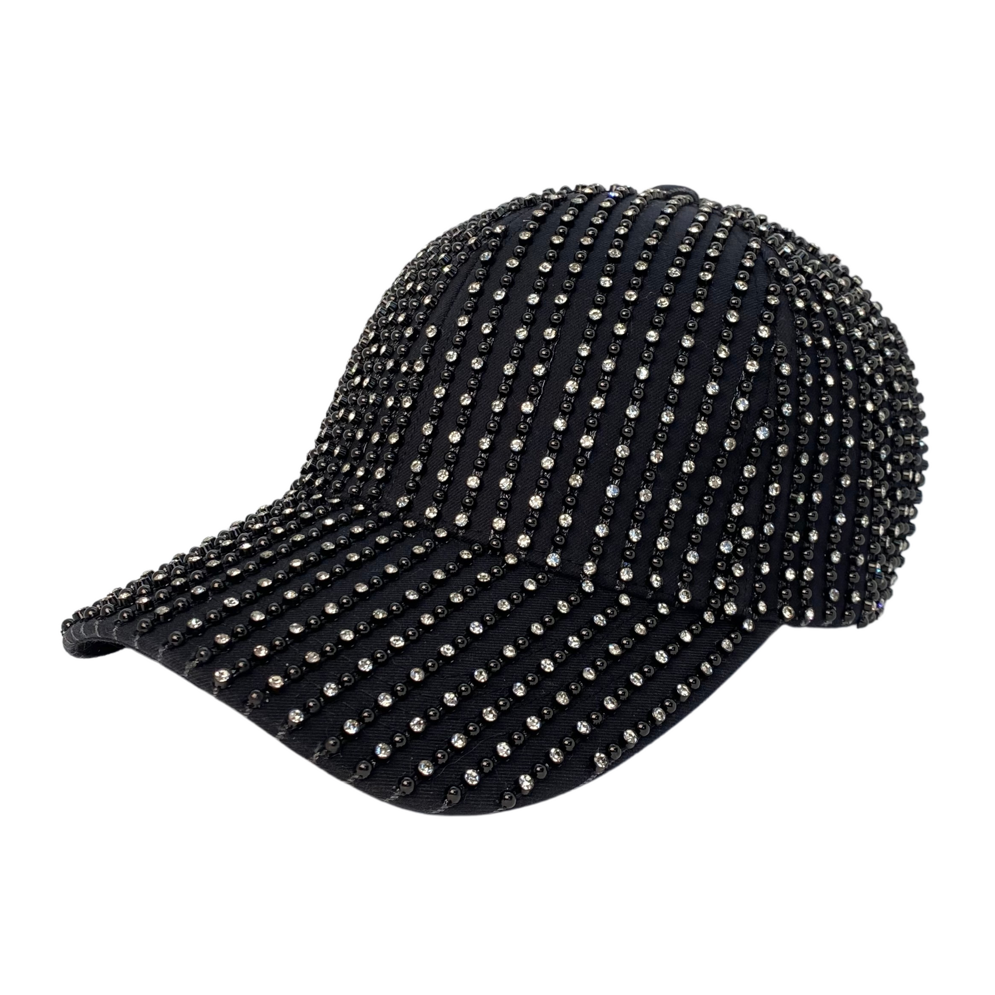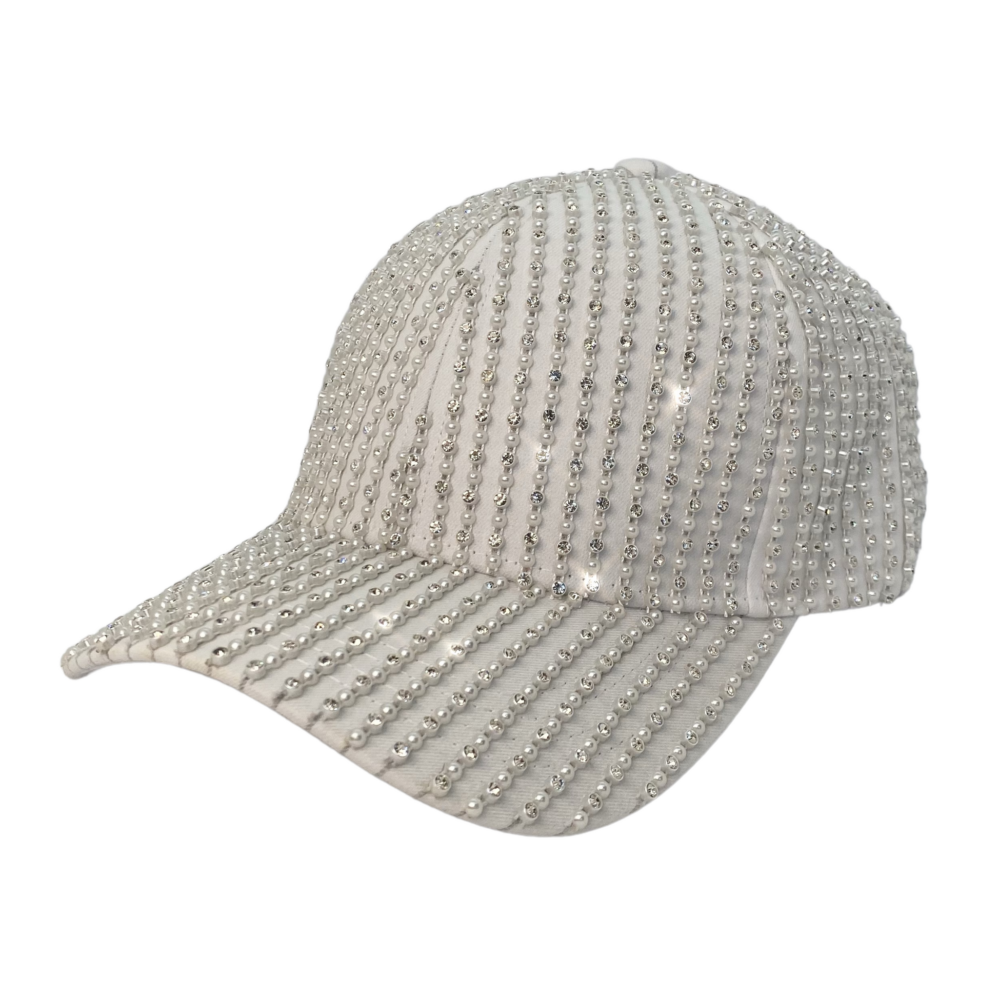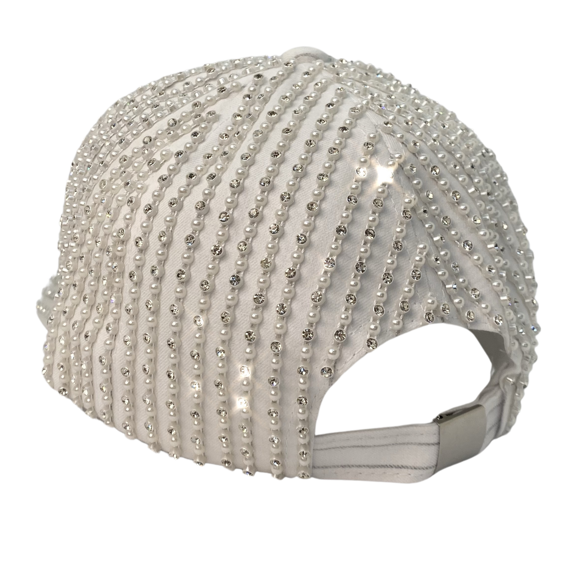 Inject some dazzle to your hat collection, Jannie crystal hip hop cap, for the ultimate statement. In white or black fabric, there is an abundance of hand embellished alternating sparkling crystals and faux pearls that shines through with timeless dazzle.