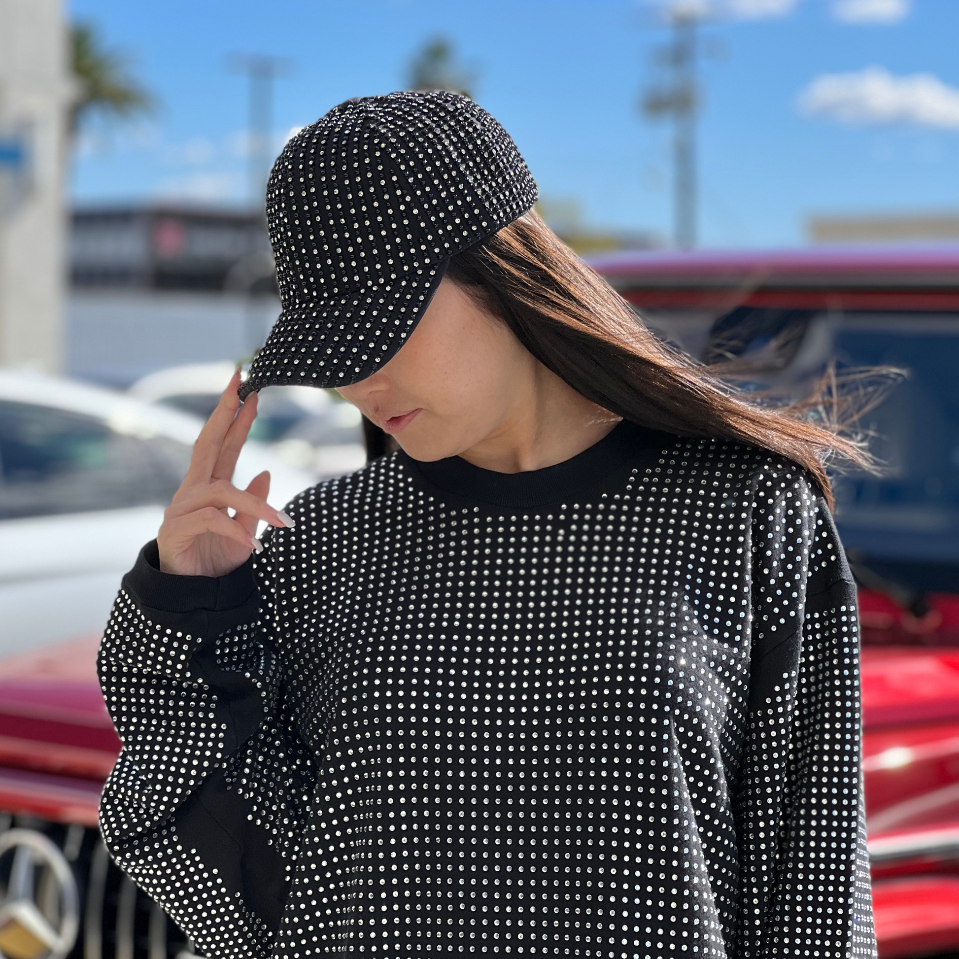 I am in love with this cap! The all-over crystals add the perfect amount of bling, and it’s such a unique statement piece. The fit is comfortable, and it looks even better in person. Definitely my new favorite accessory!