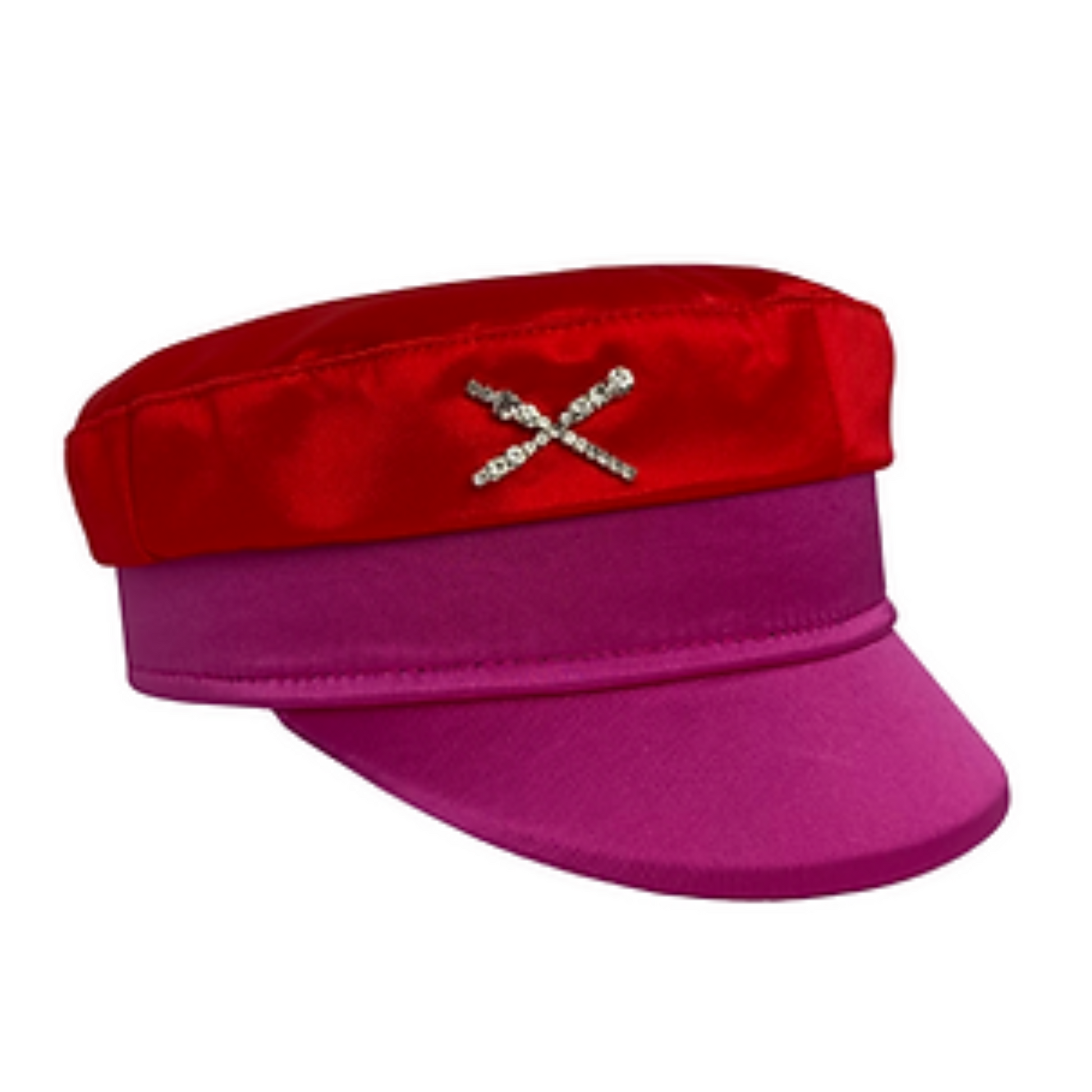 The ultimate cutie, Jennifer Baker Boy Cap, is the statement hair accessory that serves modern vibrant. Red and hot pink duo or blue and green duo satin embellished with silver crystal cross that will make any outfit exceptional.
