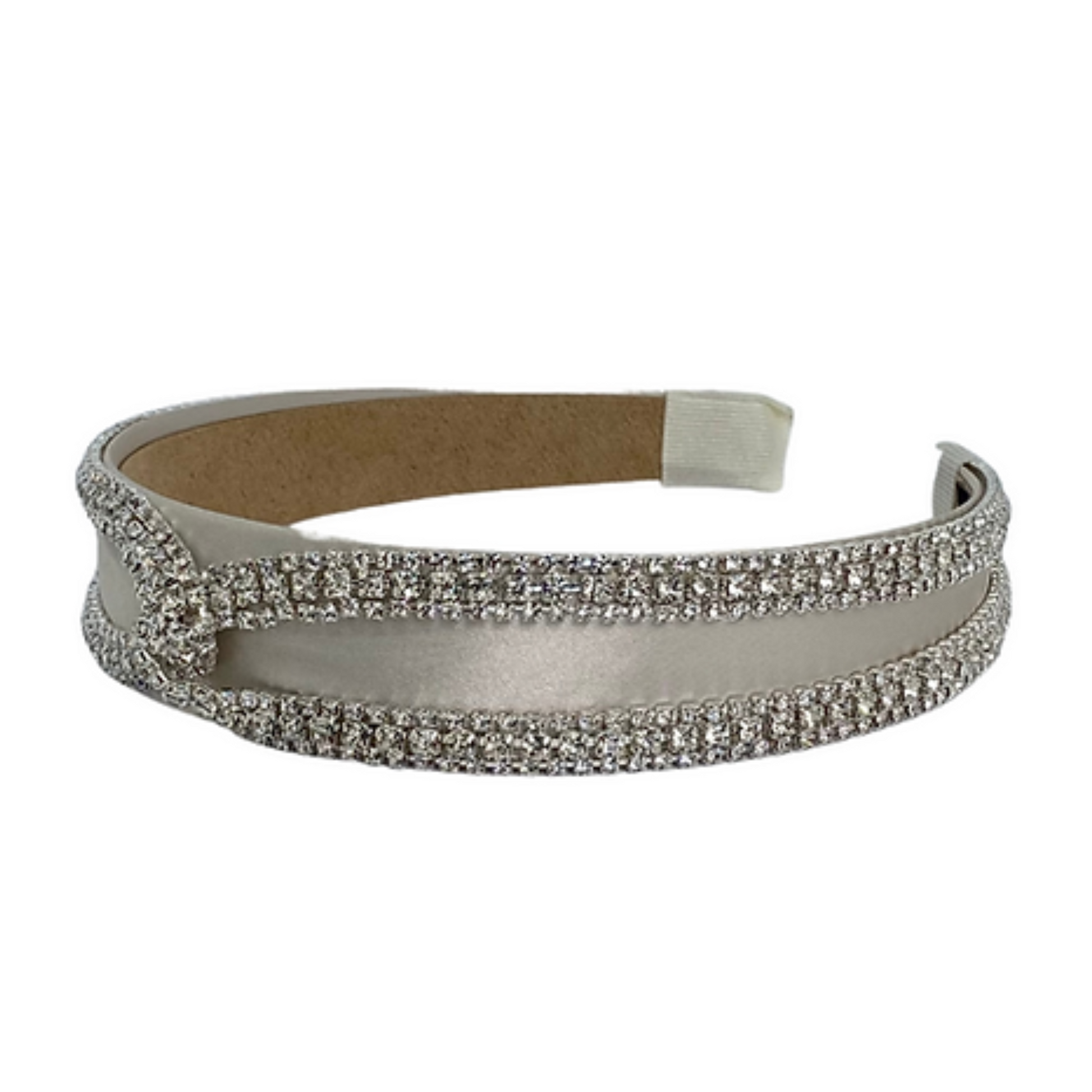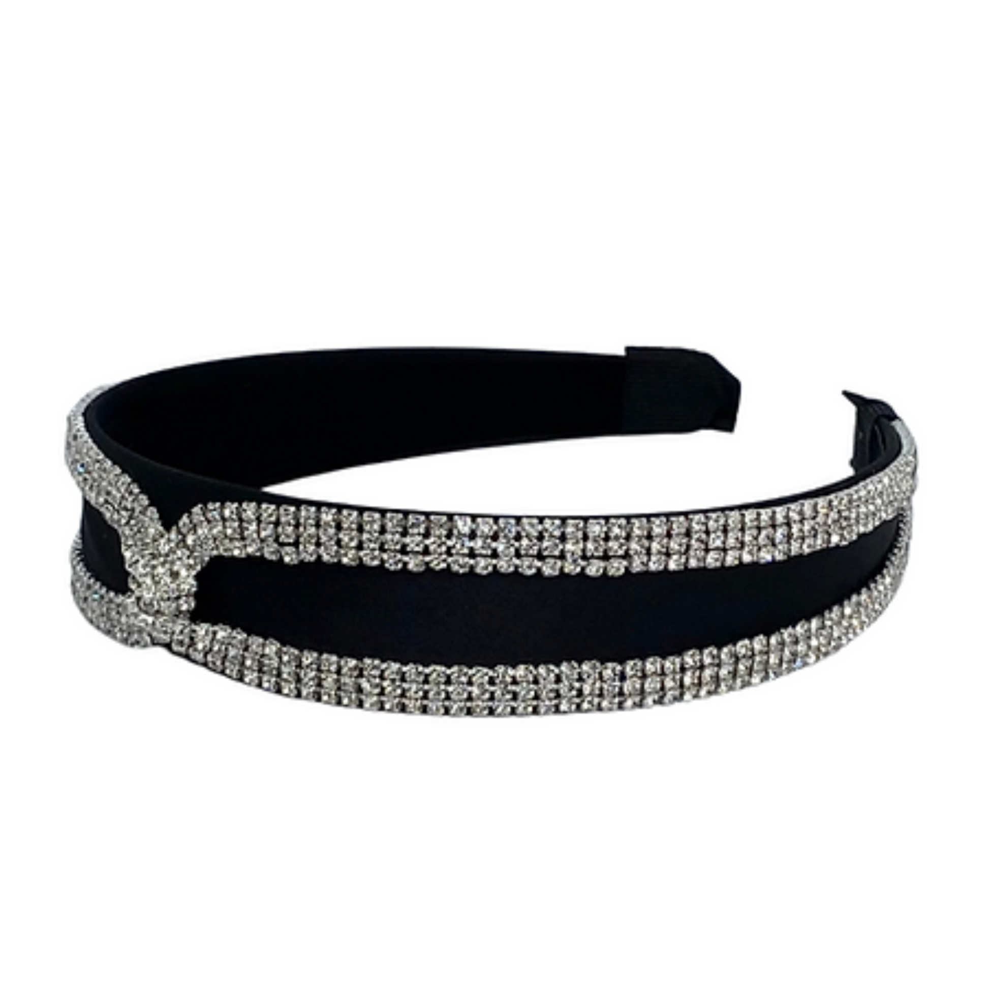 Adorn your look with this nostalgic glimmer Nicole Crystal Headband. Silver or black satin hand embellished silver crystals atop the brim and knotted in the center that shimmer beautifully with timeless dazzle. This headband has a flexible structure making it comfortable and suitable to all hair lengths and hair types.