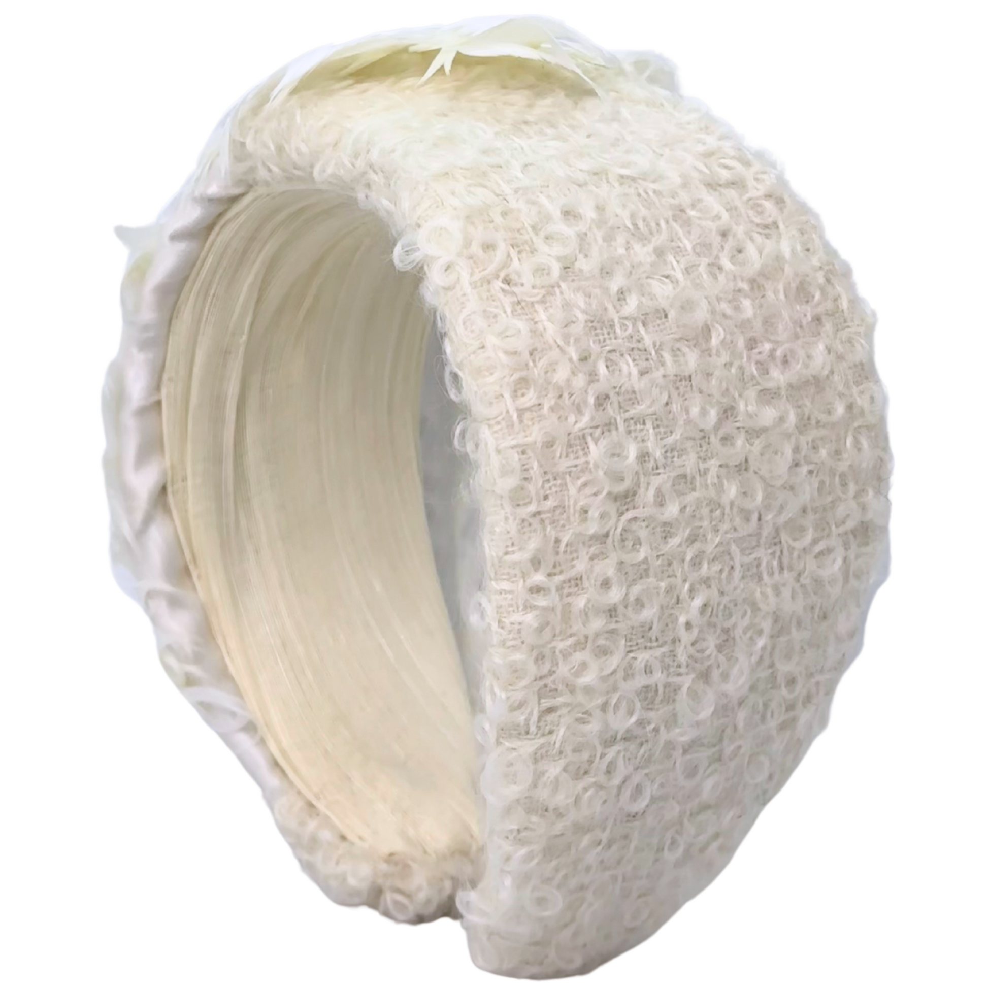 This headband is unbelievably comfortable. I wore it for hours at a wedding and didn’t feel any pressure or discomfort. The feathers give it a graceful charm, while the tweed adds texture and structure—absolutely in love